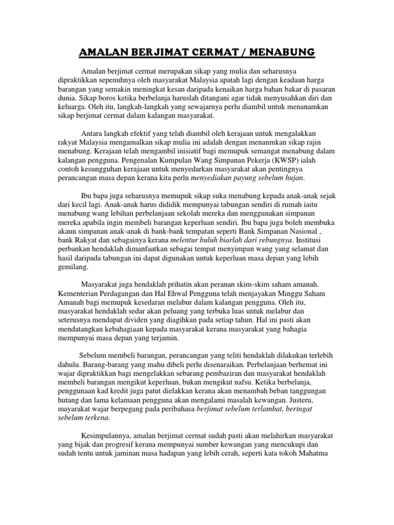 Berjimat Cermat Amalan Mulia Karangan Spm